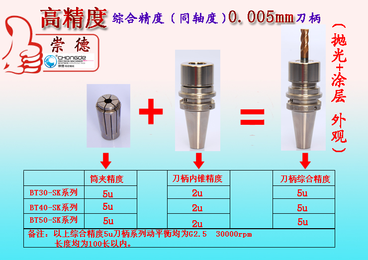 1、刀柄7:24錐度精度≤AT3及部分標準尺寸均在德國制造的標準檢具上一次檢測完成。